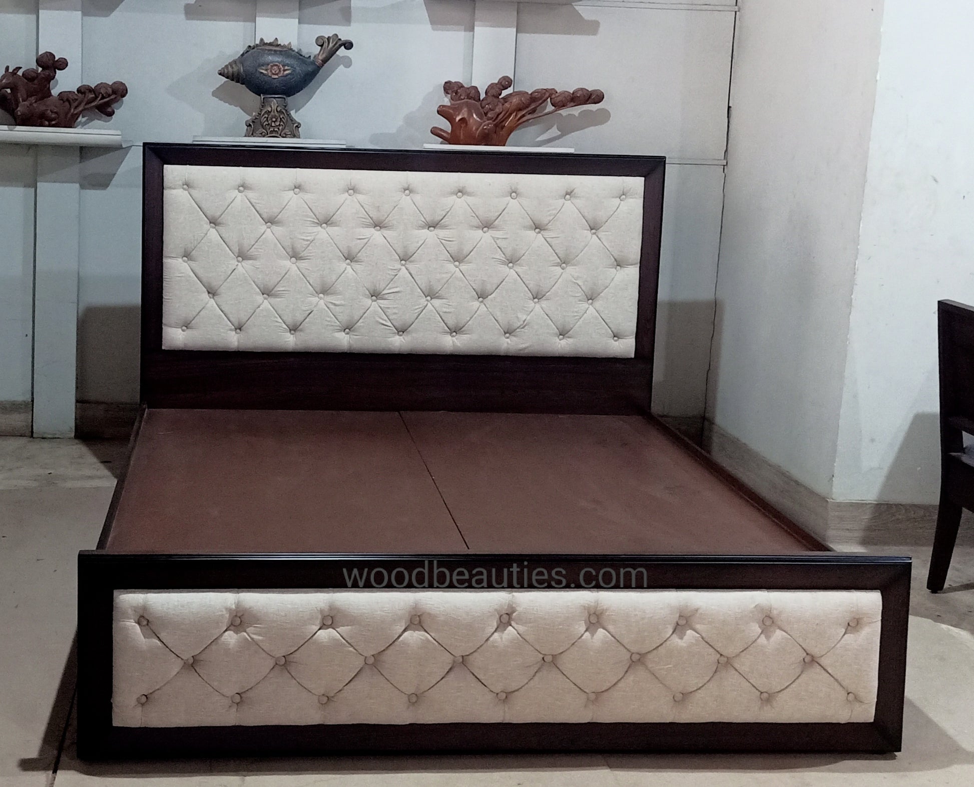 Introducing our Plywood Sheet with Pinewood Queen Size Bed, complete with convenient storage and a plush headboard cushion. Finished with a durable melamine spray polish in a rich natural dark Shisham color, this bed exudes elegance and sophistication.